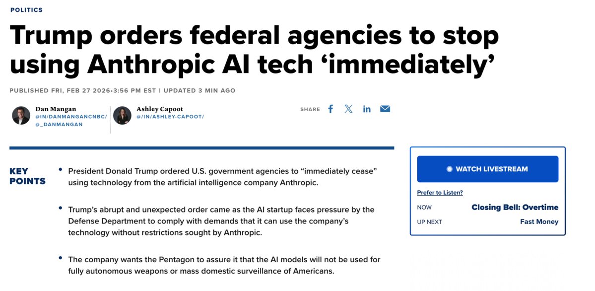 Trump Orders Immediate Shutdown of Anthropic AI Technology Across All U.S. Federal Agencies