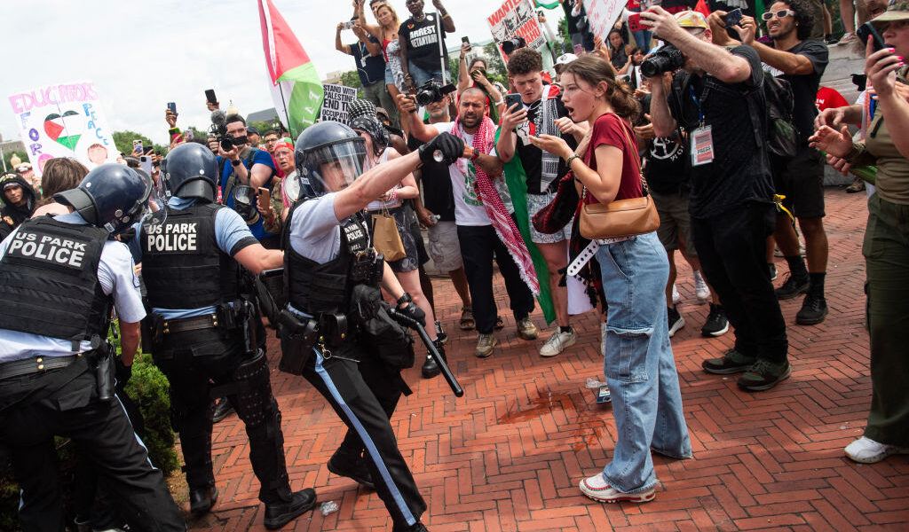 The National Park Service and U.S. Park Police dismantled a protest encampment outside Union Station in Washington, D.C., on Friday morning. The encampment, organized by the group FLARE (For Liberation and Resistance Everywhere), had been active since May. Protesters, including Raheem Kassam, accused of previously harassing him and his customers at a restaurant, demanded the impeachment of former President Donald J. Trump and other actions. A Department of the Interior spokesman stated the event violated its permit terms, leading to its revocation. One protester, Jake Adams, denied allegations of assaulting an officer, claiming no prior warning was given. The Trump administration has expanded law enforcement efforts in D.C., including deploying National Guard units and federal agents to address crime and homelessness.