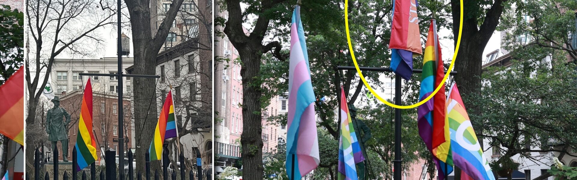 A key provision of the agreement states that within seven (7) days of filing, the National Park Service shall hang three equally sized flags—each measuring three feet by five feet—on the Stonewall monument’s flagpole. The American flag will be positioned at the top, with the Pride and National Park Service flags placed below it on either side.